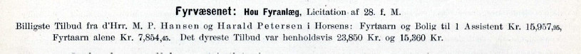 | Notits i Ingeniøren 23. juli 1892 om licitation over opførelse af Hou fyr | |