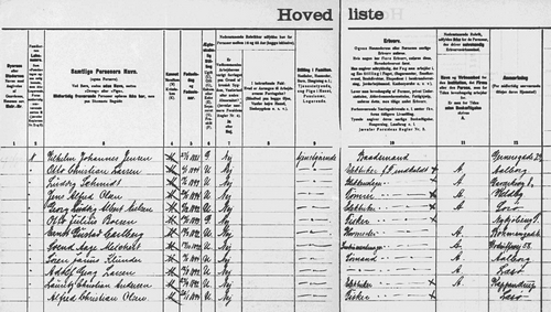 | Side fra folketælling 1916 af registrerede under Haarbølle Krigsfyr. | |