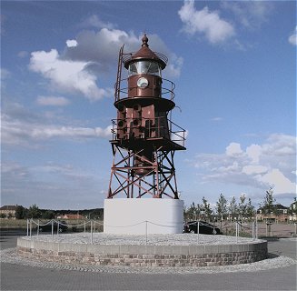 | 1912 | Sirene. Tre-Stød hver ½ Minut. | Graa Gitterkonstruktion paa granitklædt Betonunderlag. Hele Højden over Vandet: 12 m. | ||