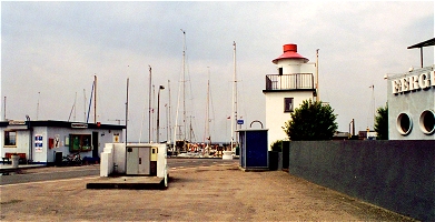 | 09-01-2004 −32/+0 dage | Hvidt firkantet tårn. S-molen, 60 m E for molehovedet. Den hvide lysvinkel leder gennem Smørstakke Løb. Den grønne fyrvinkel delvist skjult af bygninger i pejling 31° - 46° |
