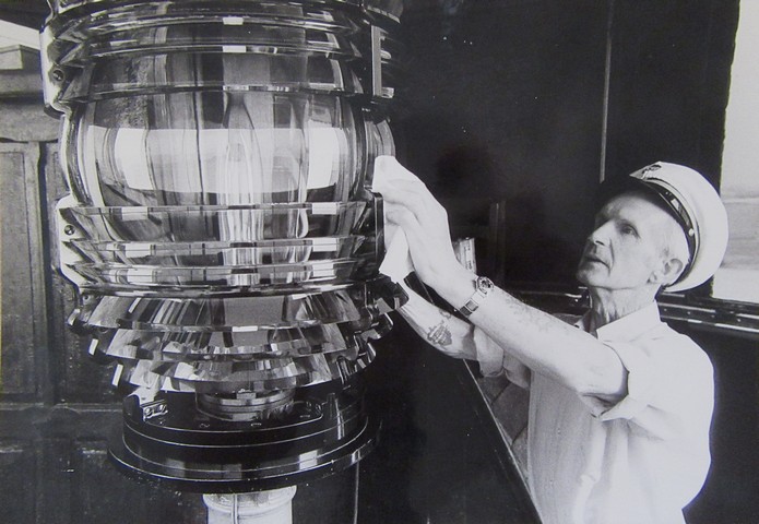 | Overfyrpasser Knud Hansen i gang med pudsning af linse på Kegnæs fyr | |
