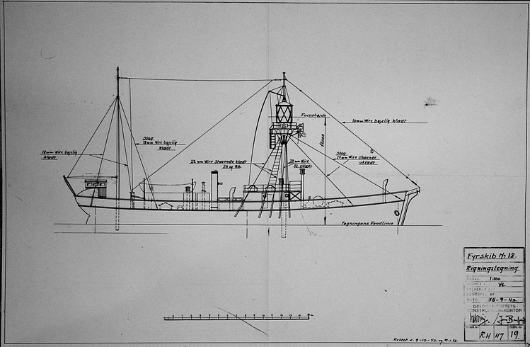 | Fyrskib Nr. XVIII rigningstegning dateret 1942. | |