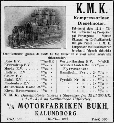 | Annonce for Kalundborg Motorfarbrik Kalundborg indrykket i Ingeniøren 9. april 1927. | |